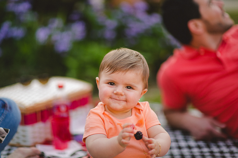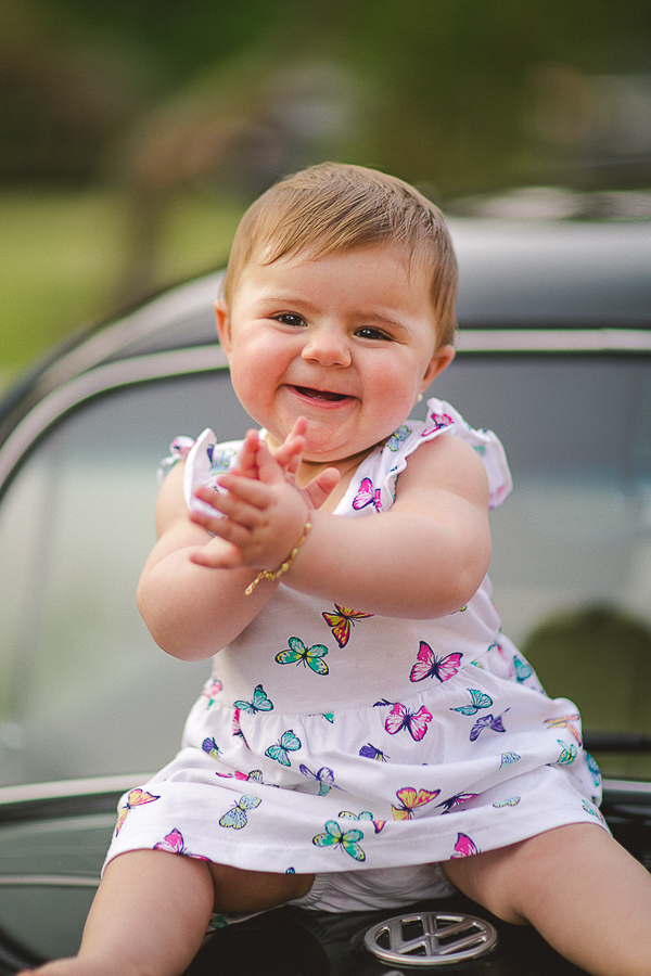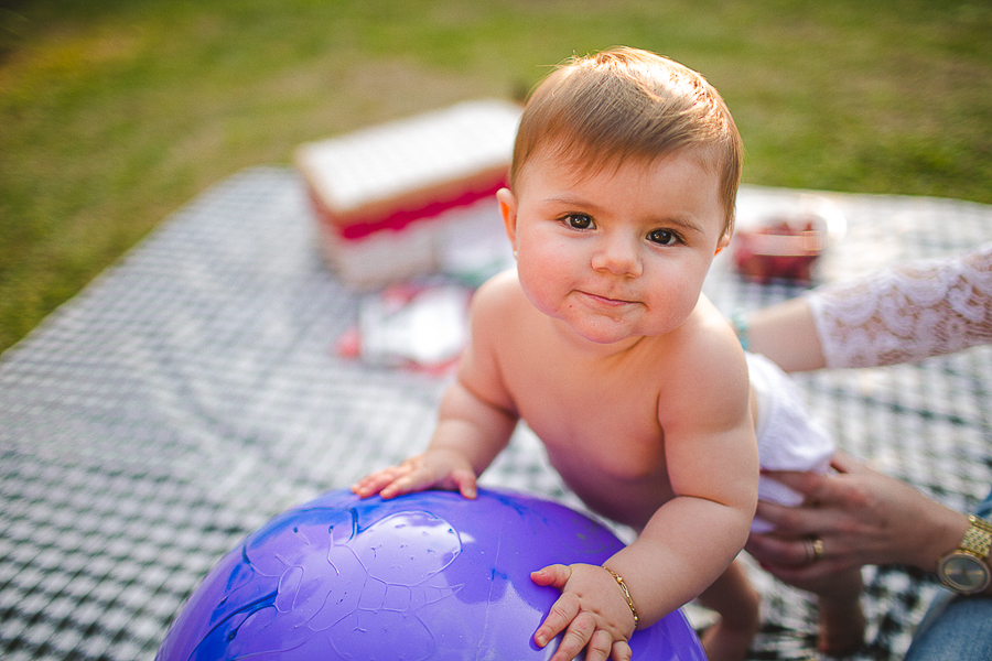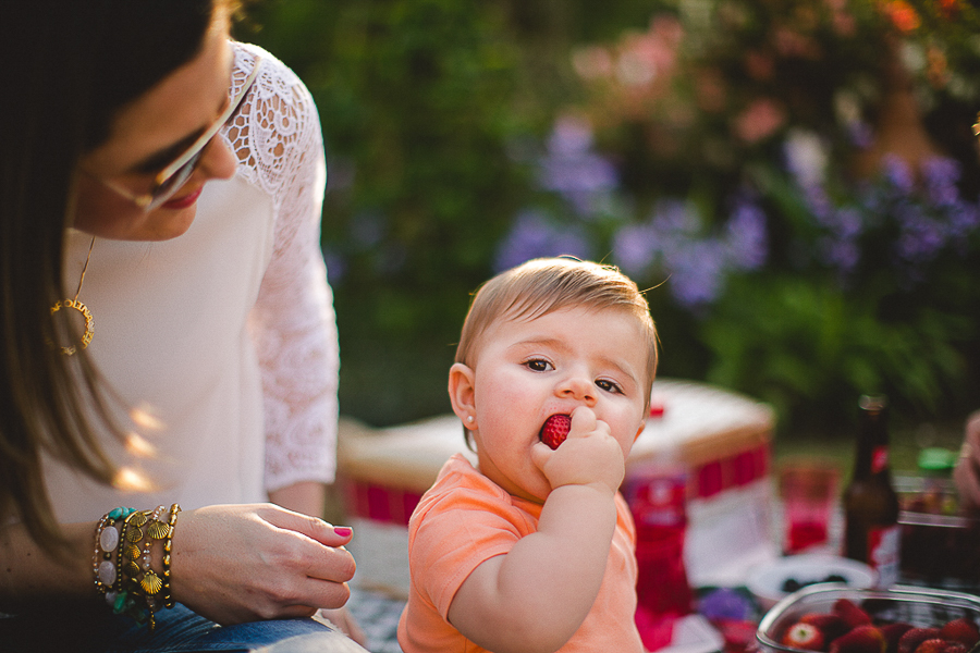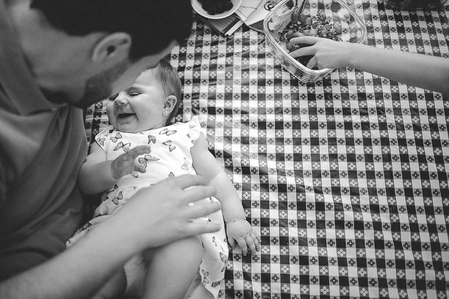 A Carol já senta sozinha, já come frutinhas e o brinco que era gigaaante na sua orelha, se transformou numa pequena bolinha!